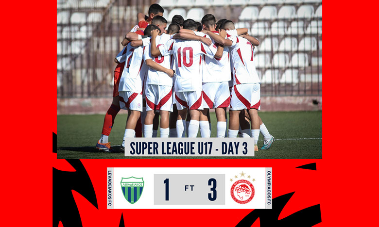 Η ομάδα Εφήβων του Ολυμπιακού σημείωσε τη δεύτερη νίκη της σε ισάριθμα παιχνίδια στο φετινό πρωτάθλημα της Super League Κ17, καθώς επικράτησε του Λεβαδειακού με 1-3 στο πλαίσιο της 5ης αγωνιστικής.