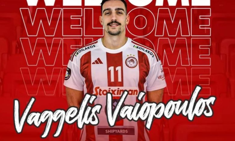 Ο ΟΛΥΜΠΙΑΚΟΣ Σ.Φ.Π. ανακοινώνει την έναρξη της συνεργασίας του με τον Βαγγέλη Βαϊόπουλο. Ο 29χρονος κεντρικός (1/1/1997, 2,03μ.) υπέγραψε το νέο του συμβόλαιο και επιστρέφει στο ρόστερ της ομάδας βόλεϊ Ανδρών του συλλόγου.