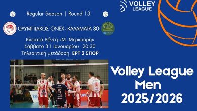 Παρακολουθείστε ζωντανά την αναμέτρηση για την 13η αγωνιστική της Volley League Ανδρών.