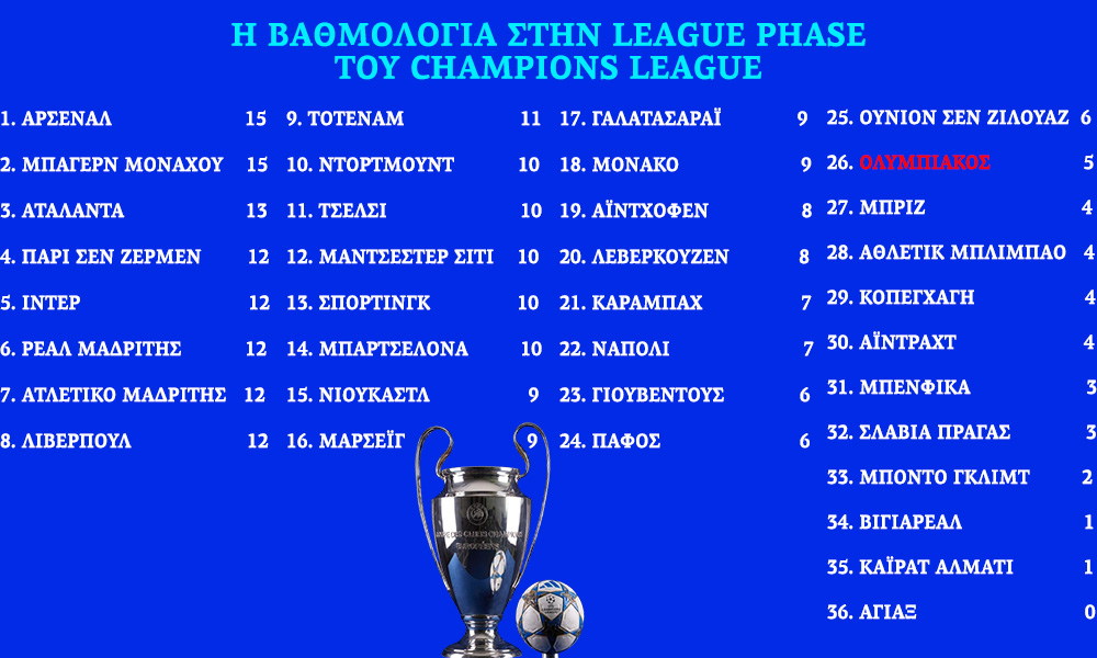 Το πρόγραμμα του Θρύλου ως το φινάλε της League Phase