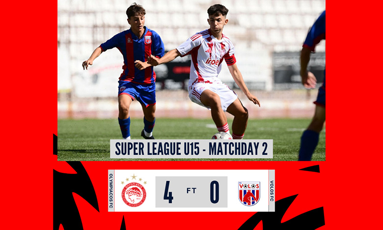 Στον δρόμο των επιτυχιών επανήλθε δριμύτερη η Κ-15 του Ολυμπιακού, η οποία επιβλήθηκε απέναντι στον Βόλο με σκορ 4-0 για την εξ αναβολής 2η αγωνιστική του πρωταθλήματος Super League Κ15.