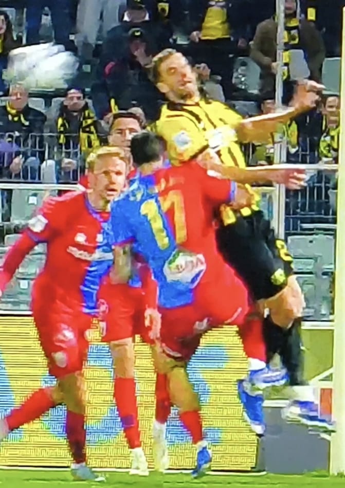Δύο φορές ο εν λόγω ρέφερι σώθηκε από το VAR,πρώτα στη φάση του πέναλτι που έδωσε και πήρε πίσω όταν η μπάλα χτύπησε στο χέρι του Μπουζούκη αλλά ήταν το χέρι στήριξης.