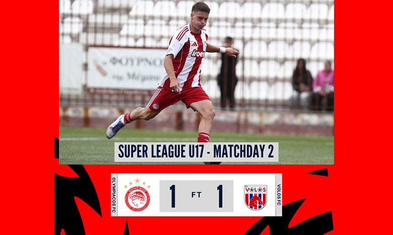 Η ομάδα Εφήβων του Ολυμπιακού αναδείχθηκε ισόπαλη 1-1 με τον Βόλο στο Ρέντη για την 2η εξ αναβολής αγωνιστική του πρωταθλήματος Super League Κ17.