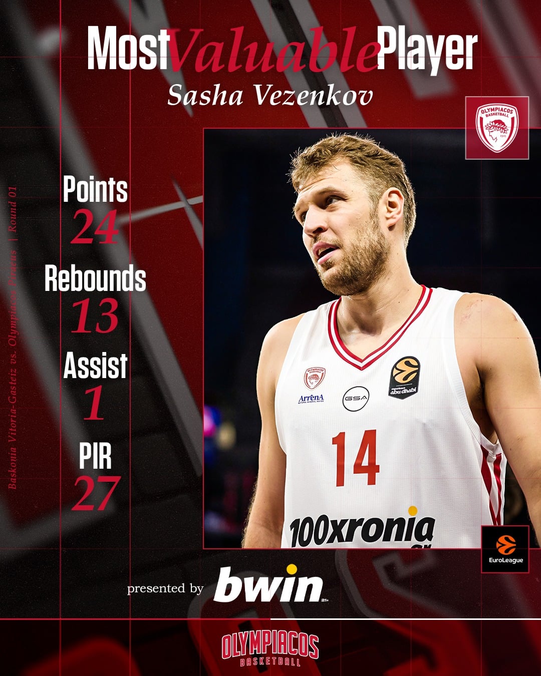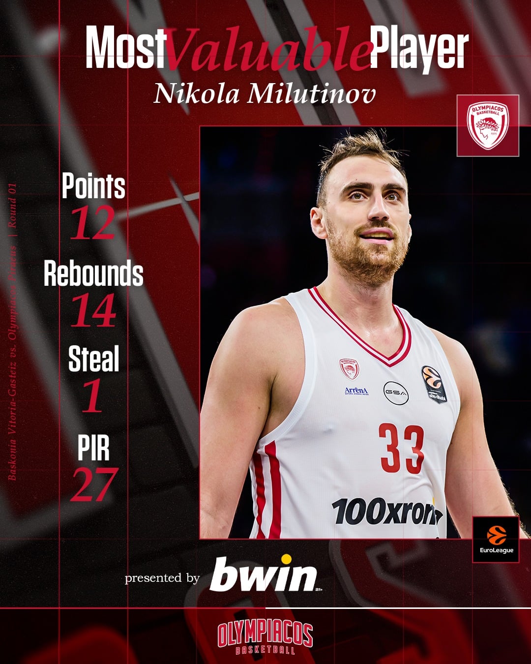 O Tάιλερ Ντόρσει κουβάλησε επιθετικά και αμυντικά ,στο μεγαλύτερο κομμάτι του αγώνα, τον Ολυμπιακό μέσα στη Βιτόρια. Ο Τόμας Γουόκαπ έβαλε ένα “αλήτικο” τρίποντο σε κρίσιμο σημείο και μοίρασε 8 ασίστ, αλλά οι Σάσα Βεζένκοφ και Νίκολα Μιλουτίνοφ αναδείχτηκαν MVP του αγώνα βάσει αριθμών.