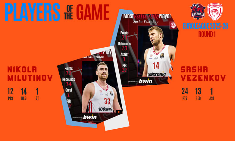 Ο Σάσα Βεζένκοφ σκόραρε 24 πόντους πήρε 13 ριμπάουντ και μοίρασε μία ασίστ, παίρνοντας 27 στην αξιολόγηση, ωστόσο τον ίδιο αριθμό πήρε και ο Μιλουτίνοφ.
