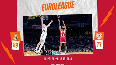 Τέλος πρώτου ημιχρόνου και ο Ολυμπιακός έχει πάρει ήδη ένα προβάδισμα ασφαλείας με 2-6 και ουσιαστικά είναι το μεγάλο φαβορί για την νίκη.