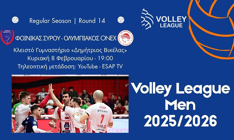 Καθώς την Κυριακή το απόγευμα (19:00), οι «ερυθρόλευκοι» αντιμετωπίζουν τον Φοίνικα Σύρου. Ειδικότερα στην Ερμούπολη. Για την ακρίβεια στο κλειστό «Δημήτρης Βικέλας». Ειδικότερα στην αναμέτρηση της 14ης αγωνιστικής της Volley League των Ανδρών.