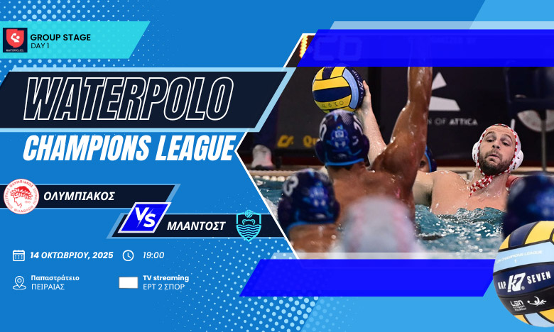 Στις 19:00 (EPT 2 ΣΠΟΡ), αντιμετωπίζουν την ισχυρή Μλάντοστ. Πιο συγκεκριμένα, την «φιλοξενούν» στο Παπαστράτειο κολυμβητήριο, για την 1η αγωνιστική της φάσης των ομίλων του Champions League. Παρακολουθείστε ζωντανά το ματς μέσα από τη Δημόσια Τηλεόραση. Για την ακρίβεια μέσα από τη μετάδοση της ΕΡΤ 2 ΣΠΟΡ, ΕΔΩ. LIVE TV: ΟΛΥΜΠΙΑΚΟΣ – Μλάντοστ.