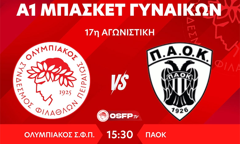 Έτσι, στις 15:30, οι νταμπλούχες Ελλάδας αντιμετωπίζουν τον ΠΑΟΚ. Για ακρίβεια τον «φιλοξενούν» στην αίθουσα 5 του Σταδίου Ειρήνης και Φιλίας. Ειδικότερα στην εξ’ αναβολής αναμέτρηση για την 17η αγωνιστική της Α1 Γυναικών.