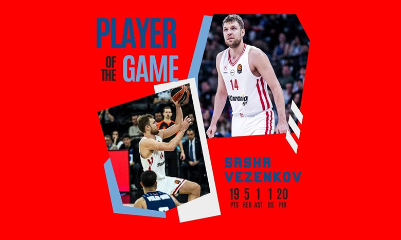 Κορυφαίος του Ολυμπιακού, που έκλεισε τη «διαβολοβδομάδα» με το 2/2 και ανέβηκε – έστω και προσωρινά – στην 4η θέση του βαθμολογικού πίνακα με ρεκόρ 15-8 με τέσσερις σερί νίκες και επτά στα οκτώ τελευταία του ματς στη διοργάνωση, ήταν ο Σάσα Βεζένκοφ με 19 πόντους, 5 ριμπάουντ και 20 μονάδες στο PIR.