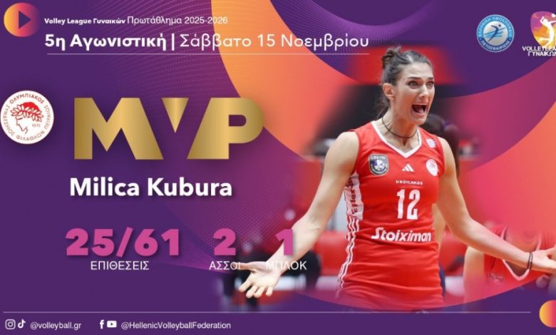 ΜVP της 5ης αγωνιστικής της Volley League η Μίλιτσα Κούμπουρα!
