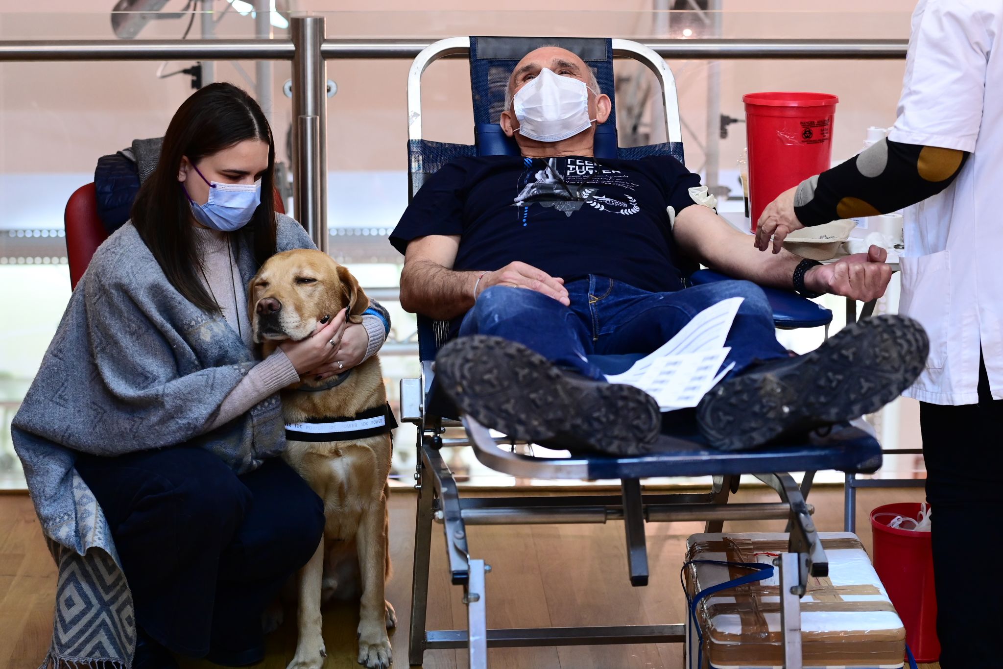Στην αιμοδοσία έλαβε μέρος και ο εκπρόσωπος κέντρου σκύλων οδηγών τυφλών, Χρήστος Κορομηλάς, δηλώνοντας: