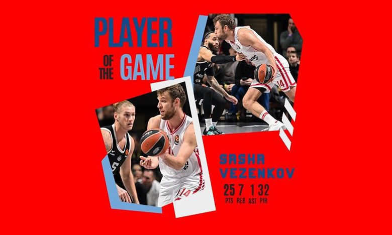 Για την ακρίβεια είχε 6/8 δίποντα (75%), αλλά και 3/4 τρίποντα (75%). Όπως και 4/4 βολές. Κατά συνέπεια, τελείωσε τον αγώνα στο Βελιγράδι με 9/12 σουτ, ποσοστό 75% εντός παιδιάς. Ακόμα μάζεψε 7 ριμπάουντ, 5 αμυντικά και 2 επιθετικά, ενώ είχε και μια ασίστ. Έτσι συγκέντρωσε 32 μονάδες στο σύστημα αξιολόγησης, στα 28:17 που έπαιξε στο ματς της Τετάρτης. Το αποτέλεσμα ήταν πώς αναδείχθηκε ο MVP της νίκης του Ολυμπιακού με την Παρτιζάν. Ο Βεζένκοφ πολυτιμότερος στο Βελιγράδι