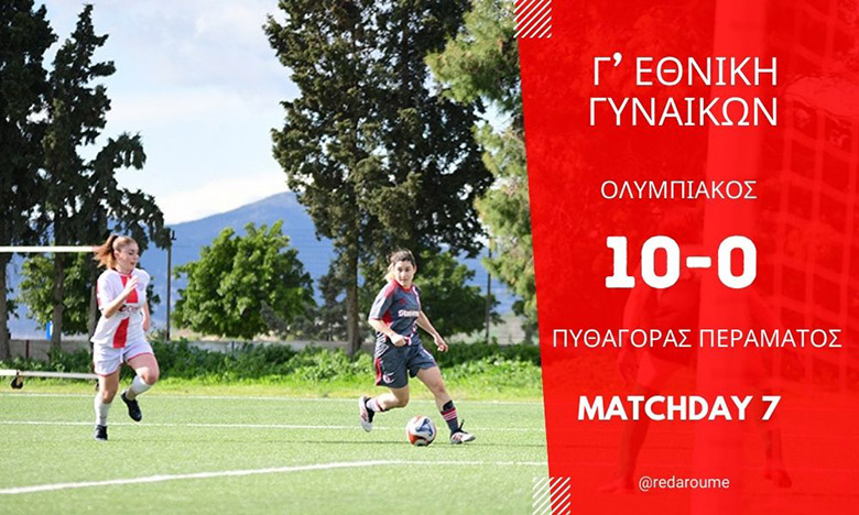 Πράγματι η ομάδα Γυναικών του Ολυμπιακού συνέχισε την εξαιρετική της πορεία. Καθώς σε ακόμα έναν αγώνα σημείωσε διψήφιο αριθμό τερμάτων. Μιας και επικράτησε 10-0 του Πυθαγόρα Περμάτος, στο γήπεδο «Ι. Βάζος». Για την 7η αγωνιστική της Γ’ Εθνικής. Έτσι διεύρυνε το απόλυτό του, στο 7/7 και μπήκε με το… δεξί στο 2026. Ολυμπιακός: Η… συνήθεια του 10-0.