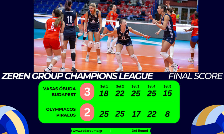 Οι πρωταθλήτριες Ελλάδας έκαναν εκπληκτική εκκίνηση στο ματς της Βουδαπέστης. Παρότι η Βάσας προηγήθηκε 6-4 με μπλοκ της Γκλεμπόσκι, η συνέχεια ανήκε στις «ερυθρόλευκες». Γιατί έκαναν εξαιρετική δουλειά στο μπλοκ-άμυνα. Επιπλέον, η Κούμπουρα ήταν σχεδόν ασταμάτητη (7/12επ., 1 άσος, 1 μπλοκ) και η Ντι Ιούλιο κουμάνταρε άριστα το παιχνίδι. Έτσι, ο άσος της Κούμπουρα έκανε το 7-8, ενώ με μπλοκ άουτ το 8-10. Ύστερα, το μπλοκ της Εμμανουηλίδου το 10-15 και το αντίστοιχο της Στεβάνοβιτς το 14-20! Μετά η Αμπντεραχίμ έκανε το 18-24, για να τελειώσει το σετ με παράβαση στο φιλέ της Λέιτε.