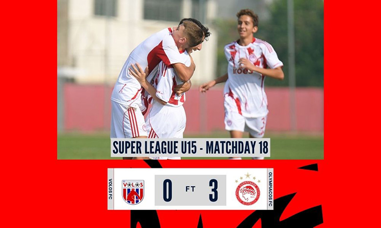 Νικηφόρα πέρασε από τον Βόλο η ομάδα Παίδων του Ολυμπιακού, η οποία επιβλήθηκε με 0-3 για την 18η αγωνιστική του πρωταθλήματος Super League Κ15.