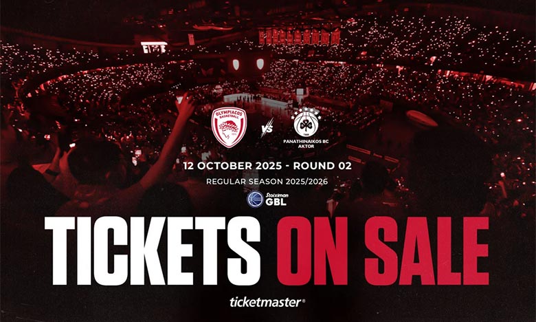 Η Κ.Α.Ε. ΟΛΥΜΠΙΑΚΟΣ θα ήθελε να ενημερώσει τους φιλάθλους της ότι τα εισιτήρια για τον αγώνα της STOIXIMAN GBL με τον ΠΑΝΑΘΗΝΑΪΚΟ AKTOR που θα διεξαχθεί την Κυριακή 12/10/2025 με ώρα έναρξης 19:00 θα είναι διαθέσιμα προς πώληση από την Δευτέρα 29/09/2025 και ώρα 14:00, μέσω του www.olympiacosbc.gr, μέσω του www.ticketmaster.gr, είτε μέσω του τηλεφωνικού κέντρου, στο τηλέφωνο 2111996007.