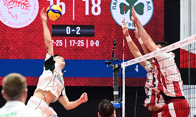 Από νωρίς στο πρώτο σετ οι «ερυθρόλευκοι» έμεινα πίσω (7-5). Αν και ο Πέριν μείωσε 9-8, ο ΠΑΟ ξέφυγε με +3 (15-12). Στη συνέχεια, ο Νεντελίκοβιτς μείωσε 20-22, αλλά το σετ πήγε στους «πράσινους» με 25-22. Επιπλέον, το πρόβλημα στην υποδοχή συνεχίστηκε στο δεύτερο σετ. Μετά τους δύο σερί άσους του Ατανασίεβιτς (4-4), Γιάντσουκ και Σπίριτο με τους άσους έκαναν το 9-6.