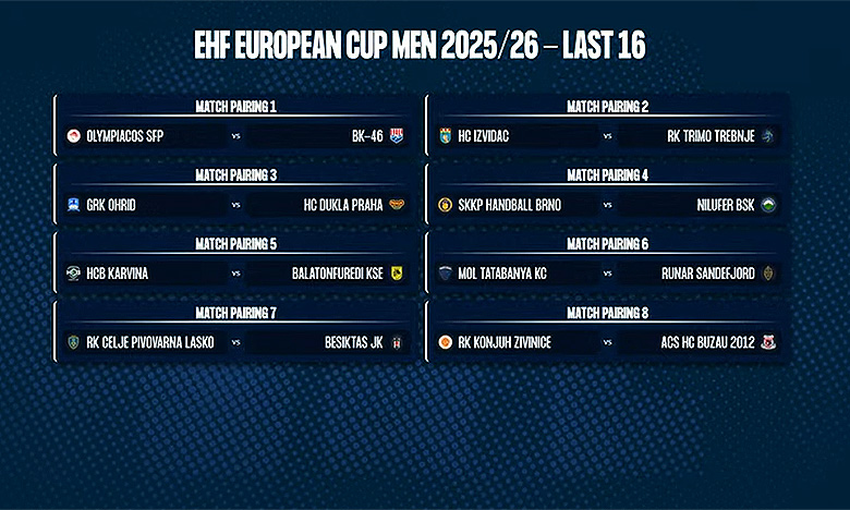 Λοιπόν, κλήρωση στα μέτρα του πρωταθλητή στη φάση των «16» του EHF European Cup. Μιας και θα αντιμετωπίσει την ΒΚ-46, στο δρόμο για τα προημιτελικά. Ειδικότερα το πρώτο ματς είναι εντός έδρας και η ρεβάνς στην Φινλανδία. Ολυμπιακός: Κόντρα στην ΒΚ-46.