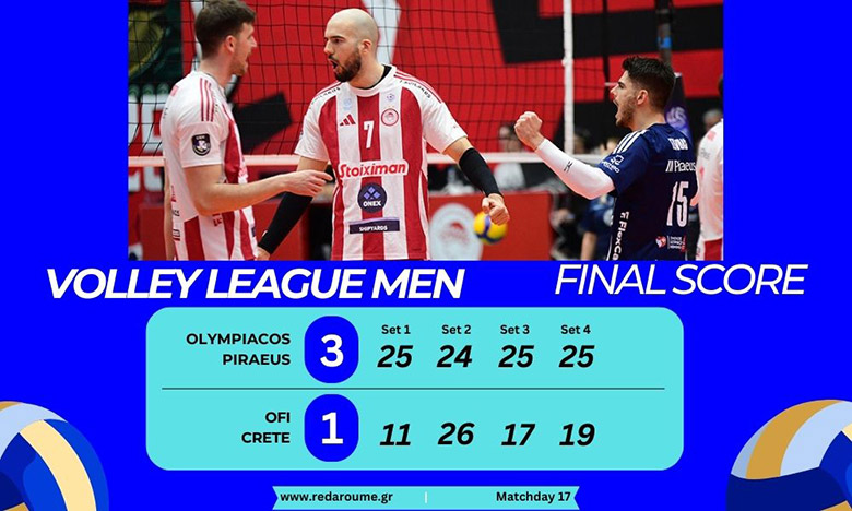 Εξαιρετική εμφάνιση από τον Ολυμπιακό ONEX στο ματς με τον ΟΦΗ. Καθώς πήρε «καθαρό» τρίποντο με 3-1. Ειδικότερα αυτή η νίκη ήρθε με πολύ καλή δουλειά από τα 9 μέτρα (12 άσοι), αλλά και στο μπλοκ (15). Αλλά και εξαιρετικό Πιτακούδη (14π., με 5 μπλοκ). Συνεπώς ο Ολυμπιακός οριστικοποίησε την παρουσία στην πρώτη 4άδα και στον αγώνα με τον ΠΑΟΚ, στη Θεσσαλονίκη, θα «κυνηγήσει» την κατάκτηση της 3ης θέσης στην κανονική περίοδο. Σημάδια κόπωσης από τον ΟΦΗ που δίνει σερί ματς τον τελευταίο καιρό… Ολυμπιακός ONEX: Στα playoffs με σούπερ Πιτακούδη