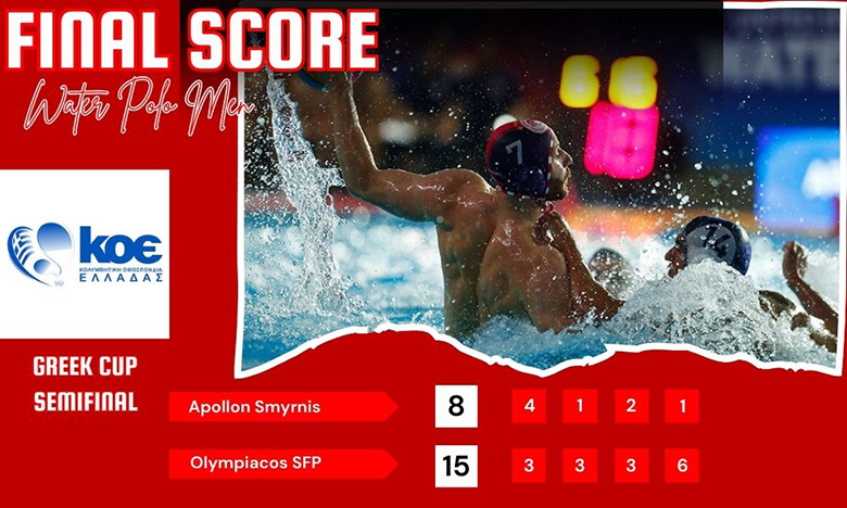 Επίσης, ο Απόλλων ισοφάρισε 6-6 με τον Σολανάκη (7:41). Στη συνέχεια είχε το… απίστευτο. Σε φάση που υπάρχει πέναλτι μαρς του Λασκαρίδη στον Κάκαρη (7:17, το βίντεο είναι αδιάψευστος μάρτυρας), οι διαιτητές Σταυρίδης και Πολυχρονόπουλος άλλαξαν την απόφασή τους. Αλλά μετά ο Ολυμπιακός πάτησε… γκάζι! Με σερί 3-0 προηγήθηκε 9-6 (4:37) με δύο γκολ του Ζαλάνκι. Για να κάνει 2-0 ως τα μέσα του τέταρτου οκταλέπτου, για το 7-11 με τον Γενηδουνιά (3:46). Για να κλείσει το ματς με «ερυθρόλευκο» σερί 4-0 και τον Δήμου να διαμορφώνει το τελικό 15-8 (0:06). Ολυμπιακός: Πρόκριση και τώρα κούπα.