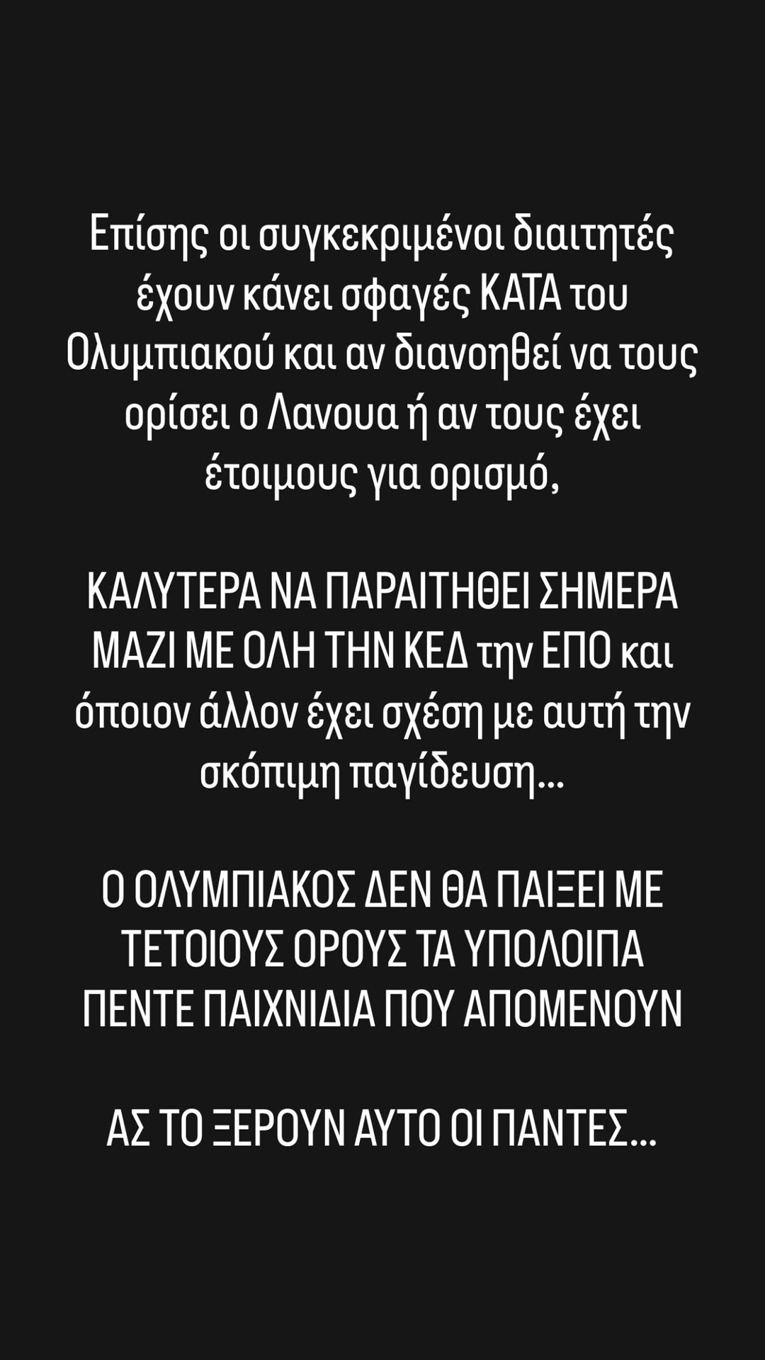 Για να συνεχίσει πως ο Ολυμπιακός δεν θα παίξει με τους όρους που προσπαθούνα νθέσουν κάποιοι