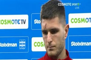 Στο τέλος του αγώνα έκανε και δηλώσεις με το σημάδι απο τον τραυματισμό του να είναι συγκλονιστικό.