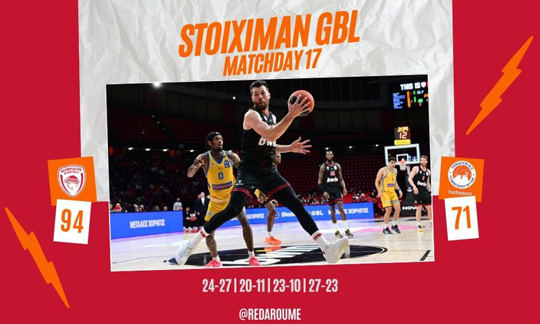 ΟΛΥΜΠΙΑΚΟΣ (Μπαρτζώκας): Γουόκαπ 9 (2/3 τρίποντα, 7 ασίστ, 3 λάθη, 2 κλεψίματα), Γουόρντ 10 (1/4 τρίποντα, 6 ριμπάουντ, 5 ασίστ), Ντόρσεϊ 8 (2/4 τρίποντα, 5 ριμπάουντ), Πίτερς 29 (5/6 δίποντα, 4/8 τρίποντα, 7/8 βολές, 3 ριμπάουντ, 2 κλεψίματα), Μιλουτίβοβ 6, Λαρεντζάκης 10 (2/7 τρίποντα, 4 κλεψίματα), Νετζήπογλου 2, Τζόσεφ 8 (7 ασίστ, 3 λάθη), Χολ 1 (9 ριμπάουντ, 2 ασίστ, 3 μπλοκ), Φουρνιέ 11 (3/5 τρίποντα)