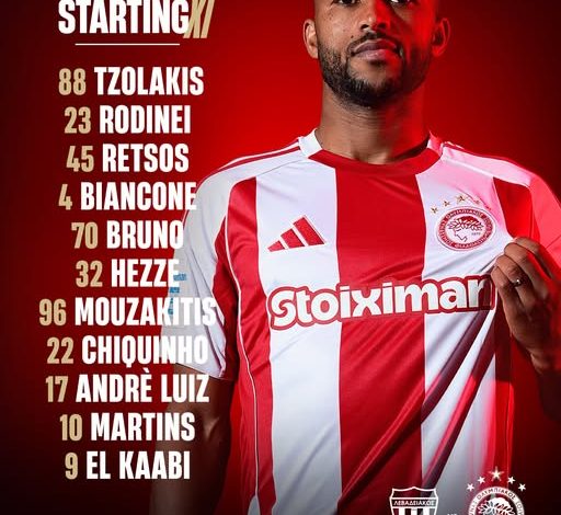 Τερματοφύλακας ο Τζολάκης και από δεξιά προς αριστερά, οι Ροντινέι-Ρέτσοις-Μπιανκον-Μπρούνο. Εσε -Μουζακίτης Τσικίνιο ,τριάδα στα χαφ, με Ζέλσον- Λουίζ στα άκρα και φορ ο Ελ Κααμπί