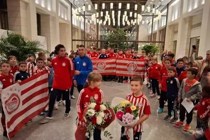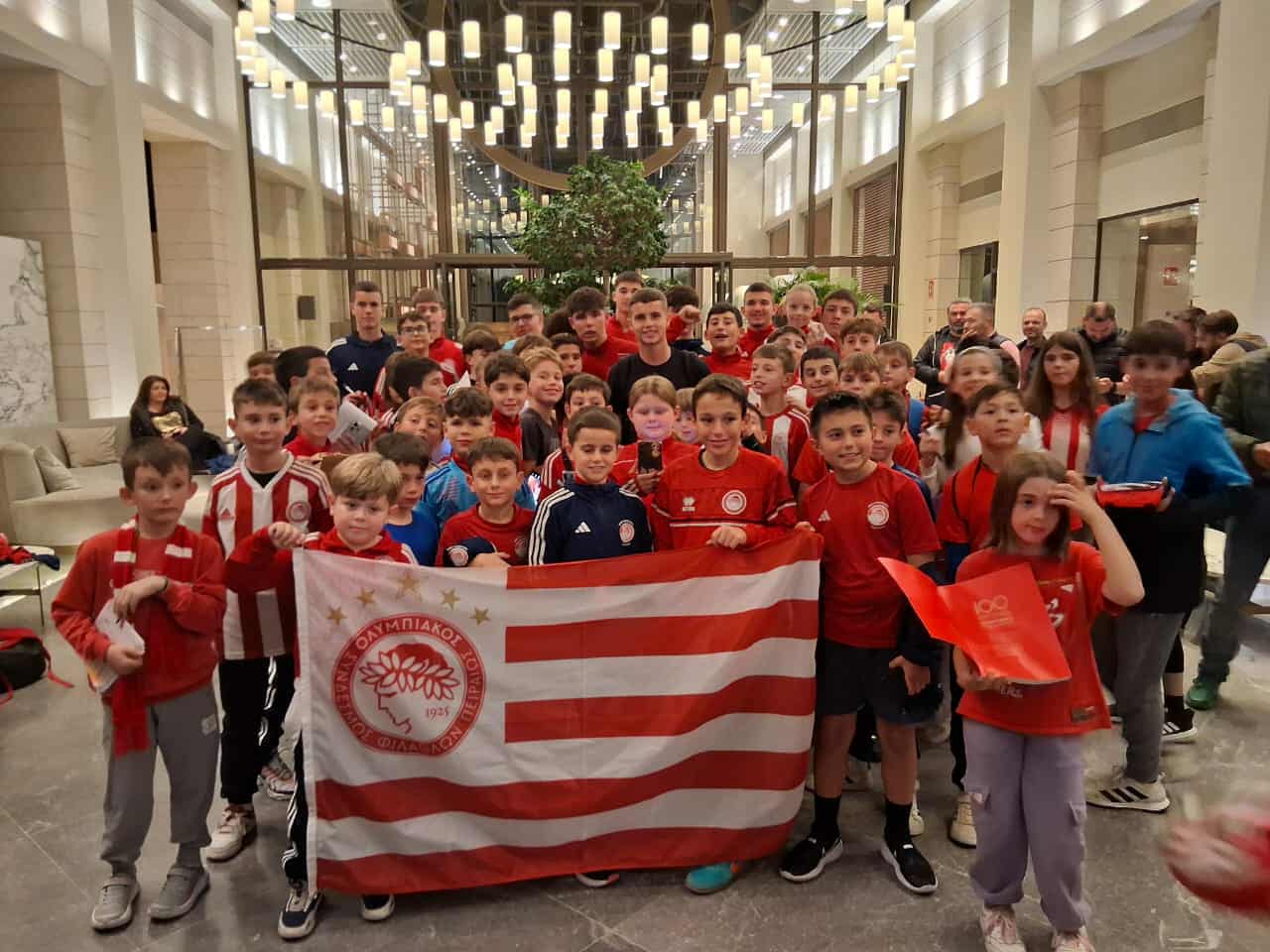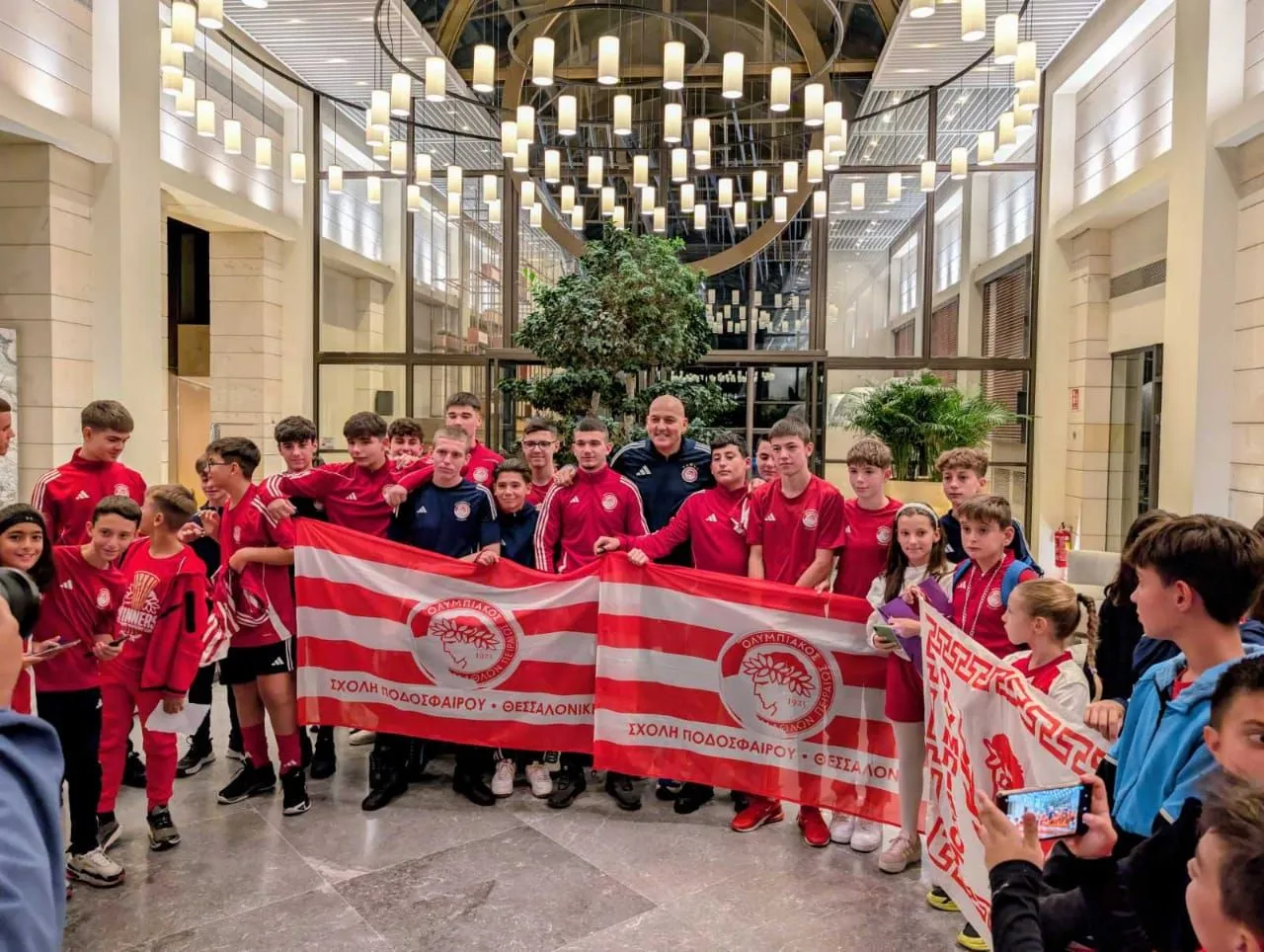 Όμορφες στιγμές εξελίχθηκαν στο ξενοδοχείο όπου βρίσκεται η αποστολή του Ολυμπιακού για το παιχνίδι με τον ΠΑΟΚ μιας και την ομάδα του Μεντιλίμπαρ υποδέχτηκε η Ερυθρόλευκη σχολή της Θεσσαλονίκης.