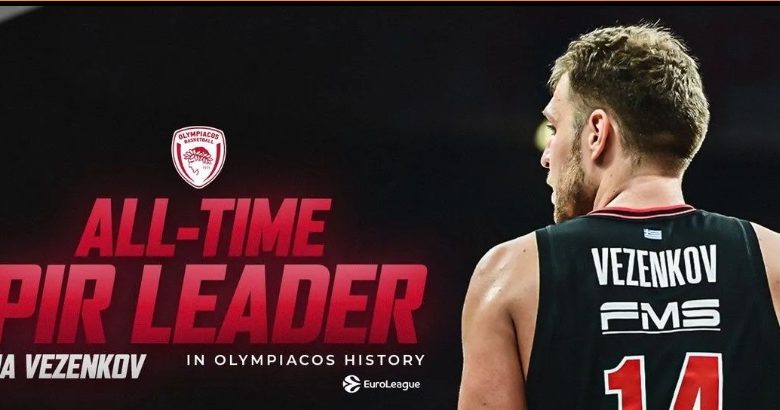 Ο φόργουορντ του Ολυμπιακού ξεπέρασε τους 3622 βαθμούς αξιολόγησης (PIR) του Γιώργου Πρίντεζη και έγινε ο κορυφαίος παίκτης στην ιστορία των “ερυθρόλευκων” στην EuroLeague σε συνολική αξιολόγηση. Μάλιστα, ο Βεζένκοφ για να φτάσει σε αυτόν τον αριθμό, χρειάστηκε 128 λιγότερα παιχνίδια από τον εμβληματικό αρχηγό του Ολυμπιακού.