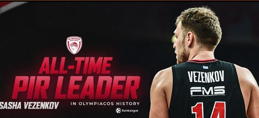“Ο Σάσα Βεζένκοφ έγραψε ακόμα μία χρυσή σελίδα με την φανέλα του Ολυμπιακού, καθώς με τις 35 μονάδες που συγκέντρωσε στο σύστημα αξιολόγησης της ΕuroLeague στον αγώνα με την Μπάγερν, έφτασε τους 3661 βαθμούς αξιολόγησης με τη φανέλα του Ολυμπιακού και έμεινε πρώτος στη σχετική λίστα στην ιστορία της ομάδας μας στη διοργάνωση.