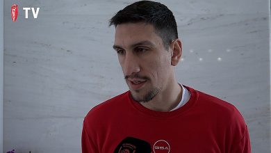 Αλλαγή ζήτησε ο Σέρβος σέντερ του Ολυμπιακού μετά από χτύπημα στoν αντίχειρα του χεριού του.
