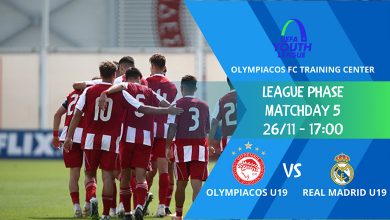 LIVE TV: ΟΛΥΜΠΙΑΚΟΣ Κ19 – Ρεάλ Μαδρίτης Κ19