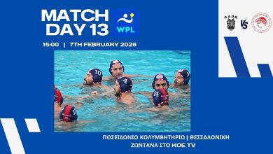Παρακολουθείστε ζωντανά το ματς για την 13η αγωνιστική της Water Polo League των Ανδρών.