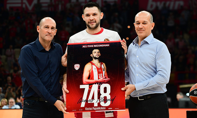 Με τους ιδιοκτήτες της ΚΑΕ ,αδερφούς Αγγελόπουλους,να τιμούν τον Παπανικολάου πριν τον αγώνα με τη Ντουμπάι.