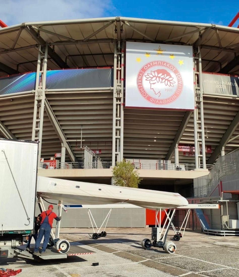 Σήμερα αφίχθησαν από την Ολλανδία νέα επιδαπέδια φωτιστικά σώματα LED για να φωτίζουν, με τον κατάλληλο φωτισμό τους, τον χλοοτάπητα του Σταδίου.