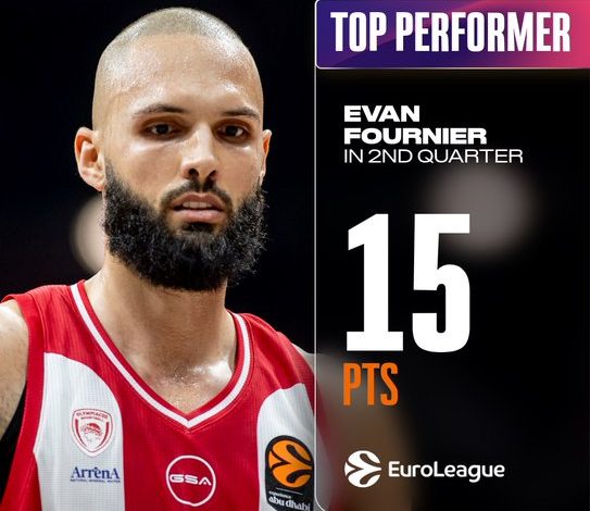 Ο Ολυμπιακός αντιμετωπίζει την Φενερ στο ΣΕΦ για τον εξ΄αναβολής αγώνα της 14ης αγωνιστικής της Euroleague . Ο παίκτης που ξεχώρισε στο πρώτο ημίχρονο ήταν ο Εβαν Φουρνιε .