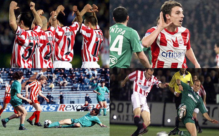 Η πρώτη μας βρίσκει το μακρινό 1990 όταν για τον πρώτο ημιτελικό του Κυπέλλου, ο Ολυμπιακός υπέταξε με 2-1 τους «πράσινους» στο παλιό Καραϊσκάκη και είχε πετύχει το πρώτο σημαντικό βήμα για την πρόκρισή του στον τελικό και την εν συνεχεία κατάκτηση του τροπαίου χάρη στη νίκη του επί του ΟΦΗ με 4-2.