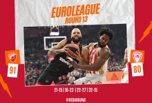 Ο Ολυμπιακός ήταν διπρόσωπος στο Βελιγράδι και τελικά ηττήθηκε από τον Ερυθρό Αστέρα με 91- 80 , πέφτοντας στο 8-5.